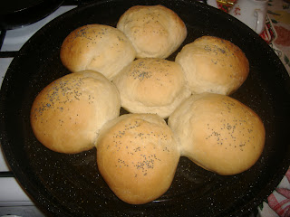 Le punem pe o tava unsa cu putin ulei cu putina distanta intre ele, le ungem cu apa pe deasupra si presaram putin mac sau susan. Le mai lasam in tava vreo 10 min sa stea si pe urma le bagam la cuptorul incins .